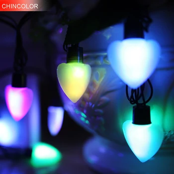 Beste prijs - 5 m 20led Vakantie lichten 5*3 cm Liefde vorm Led Light string Multicolor AC Plug kerst bruiloft valentijn dag fairy decoratie DA