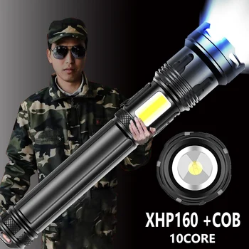 Lage prijs - 1000000LM XHP160 10 Core Lange Afstand Led Zaklamp 10000Mah Met Side Cob Light Usb Oplaadbare Zoom Torch Flash Light Beste aanbiedingen