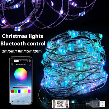Speciale aanbiedingen - Bluetooth Kerstverlichting Koperdraad Led String Light Garland Slaapkamer Voor Thuis Wedding Newyear Decoratie Usb Tv Instellen Light